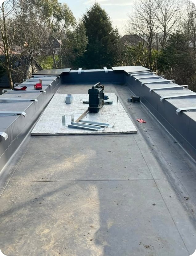 We specialise in flat roofing systems such as built-up felt, liquid-applied roofing, and GRP fibreglass, as well as sheeting, cladding, and PVC roofline installations. Every system is installed with precision and designed for long-term performance.
